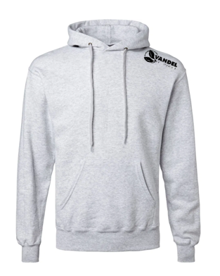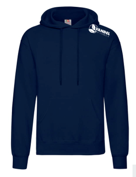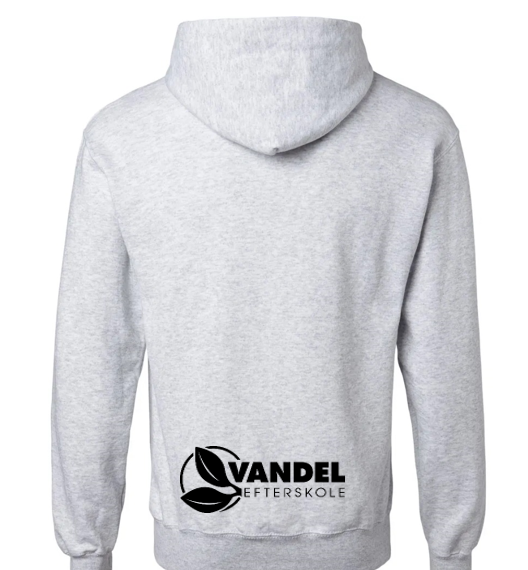 Lille Vandel logo på skulderen og stort logo nederst på ryggen, på alle farver.